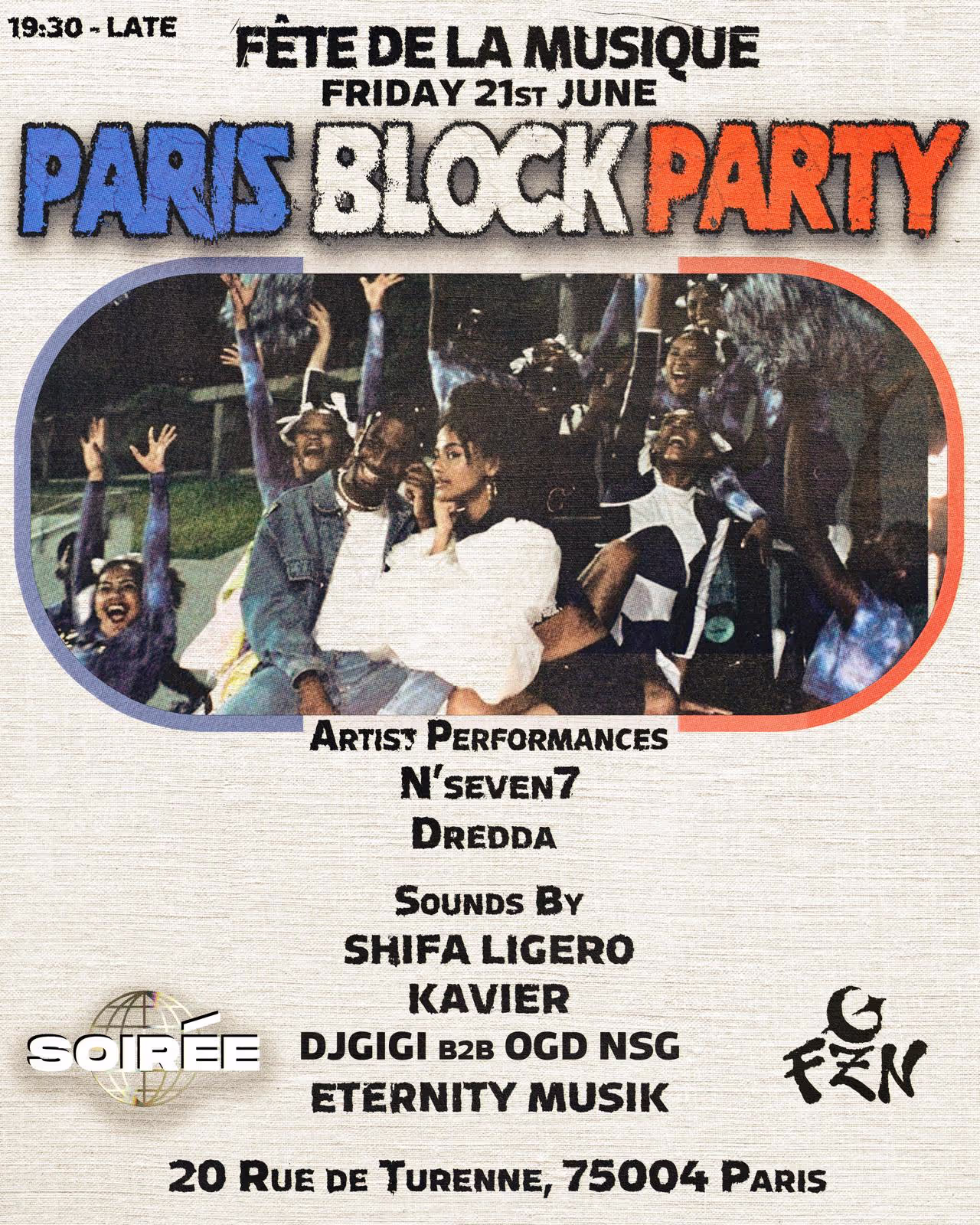 SOIRÉE Proudly presented our second ‘PARIS BLOCK PARTY’ x FZN during Paris Fashion Week 2024 Special performance from the French rappers Nseven7 Performance from the UK sensation Dredda